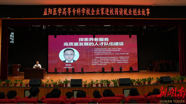 湖南日报·新湖南客户端4月30日讯(通讯员 刘静远)“孩子们,我们要不断自练内功,沉淀自己,唯有自身本领过硬,才能在橄榄枝伸来时牢牢把握住,脱颖而出。”4月28日,上海福爱驿站养老服务集团董事长刘长松应邀来到益阳医学高等专科学校开展就业创业讲座,并受聘担任学校创新创业导师及产业导师。副校长喻文辉为他颁发导师聘书。护理学院智慧健康养老服务与管理专业学生到场聆听讲座。